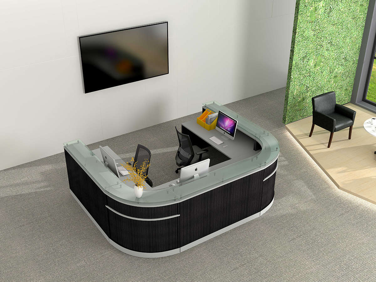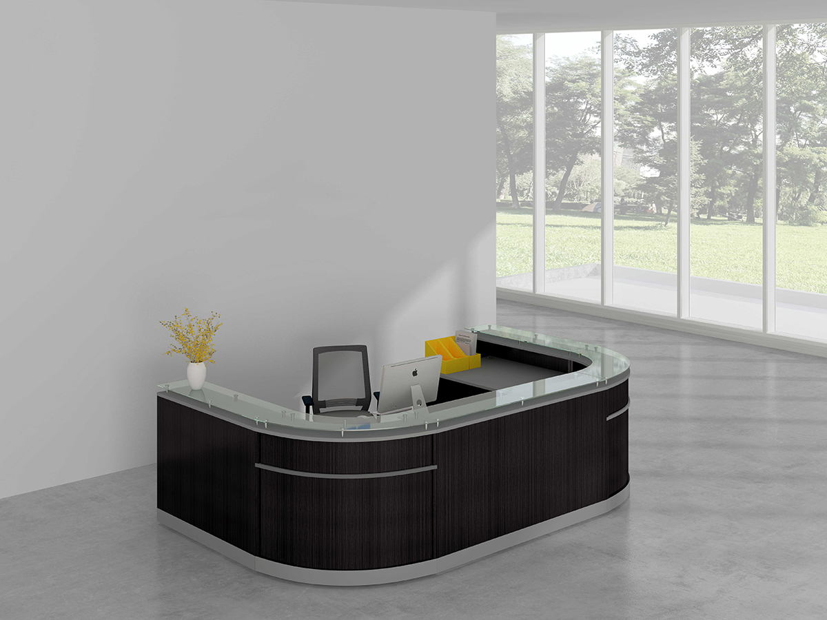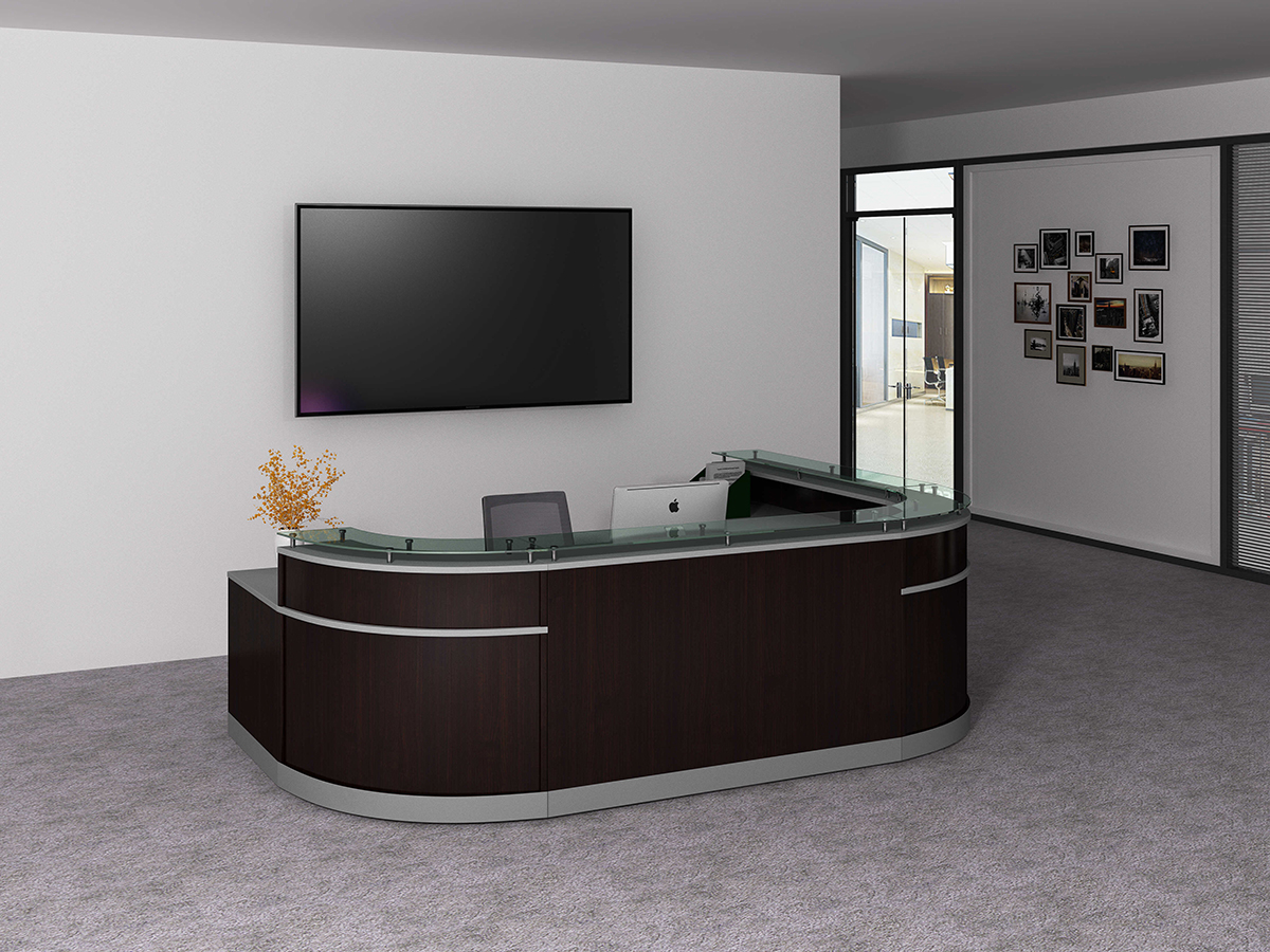 | NRC1275 | 47.2*31.49″ Wood Glass Reception Main desk/hardware | 47″W*32″D*41″ | W1200*D800*H1050 | Drift/Mahogany/Mocha/White/Steeely Gray/Cordova Brown/Silver accent | Melamine | |