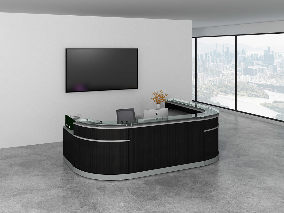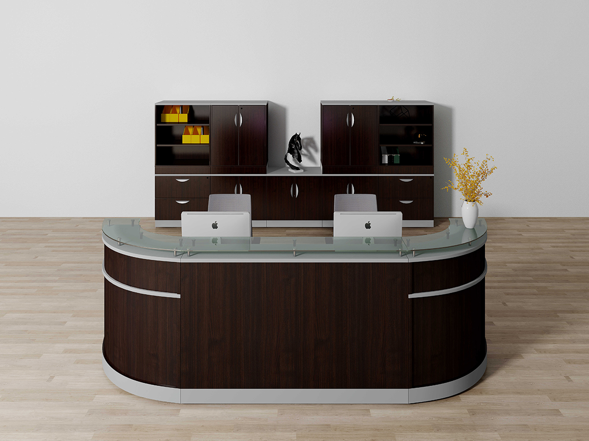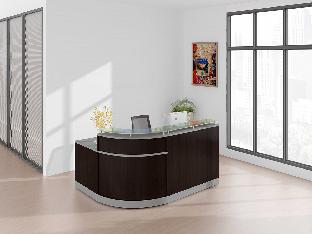 | NRC1275 | 47.2*31.49″ Wood Glass Reception Main desk/hardware | 47″W*32″D*41″ | W1200*D800*H1050 | Drift/Mahogany/Mocha/White/Steeely Gray/Cordova Brown/Silver accent | Melamine | |