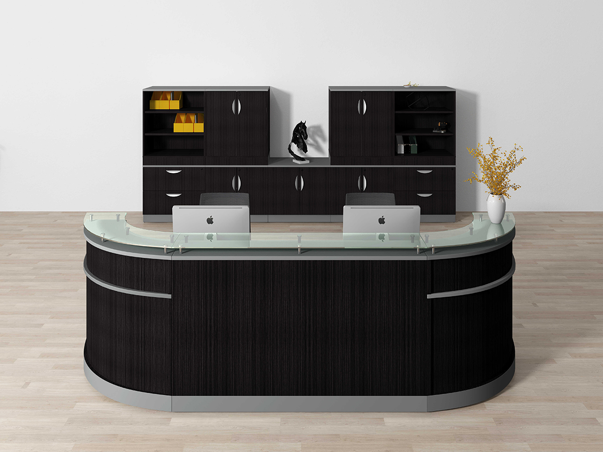 With scratch- and stain-resistant laminate, the reception desktop provides a durable worksurface.